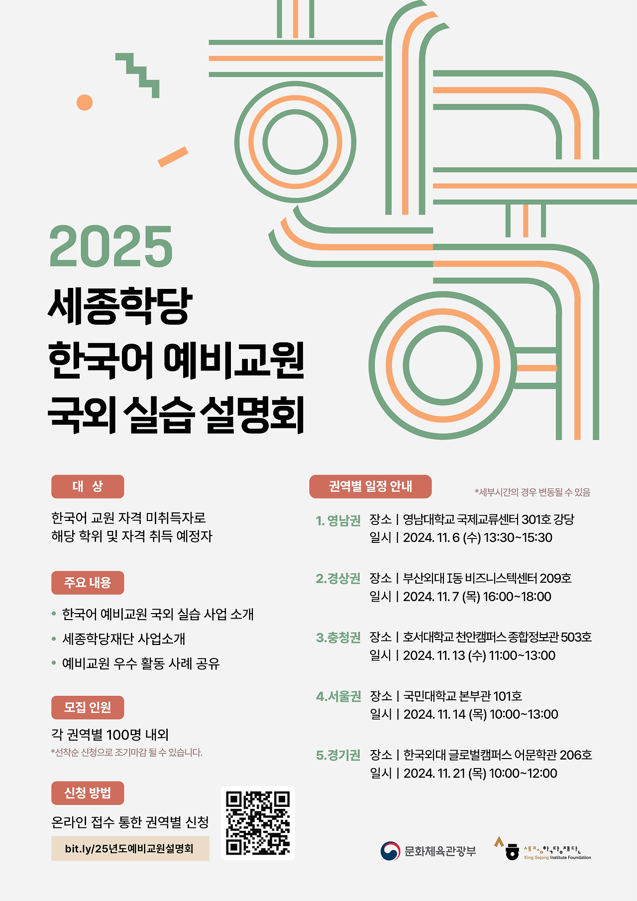 1. 2025년 세종학당 한국어 예비교원 국외 실습 설명회 공고
