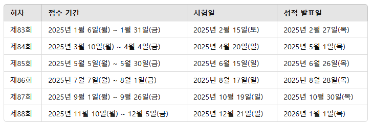 2025년 KBS한국어능력시험은 총 6회 시행될 예정입니다. 각 회차별 접수 기간, 시험일, 성적 발표일은 다음과 같습니다.